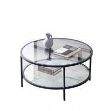 【SEA】Glass coffee table with large storage space - Black+Glass