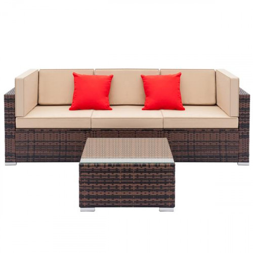 This 4pcs fashion rattan sofa furniture set is highly recommended to you. Unlike normal leather sofa, this rattan sofa will give you a different using experience. Adopting high quality PE rattan and steel frame, it features stable, sturdy and durable. With soft cushion, it also can ensure softness and comfortable seating experience. It includes 2pcs corner sofas & 1pcs single sofas & 1 pcs coffee table, which can meet your family daily demand.