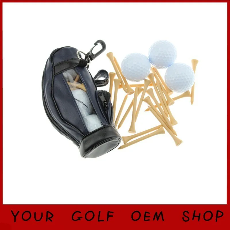 CRESTGOLF PU Golf Ball Holder Small Golf Ball Bag with Hook & 3 Pcs Golf Training Balls 15pcs Wooden Golf Tees 500 pcs/lot